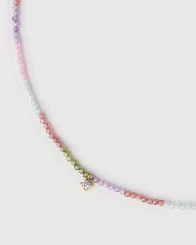 A twinkling treasure, the Taylor Necklace brings a playful touch of colour to your look. Adorned with a cascade of multi-coloured stones and finished with a delicate zircon charm, Taylor is the perfect piece to brighten your everyday style, while also adding effortless elegance to your evening outfits.