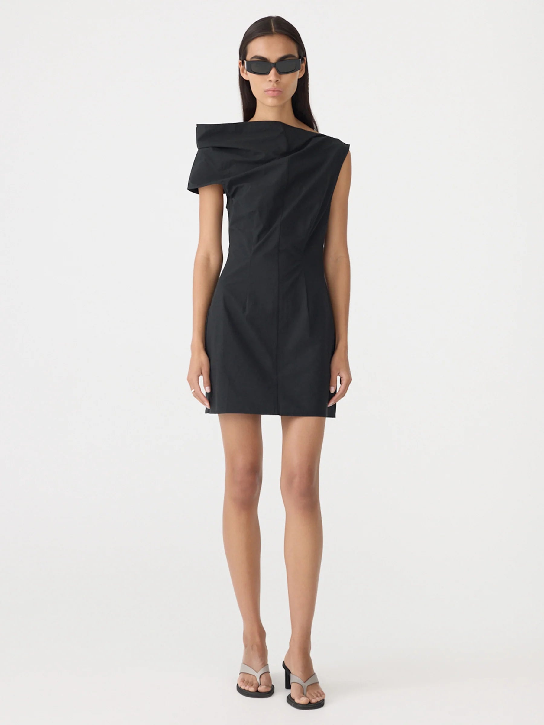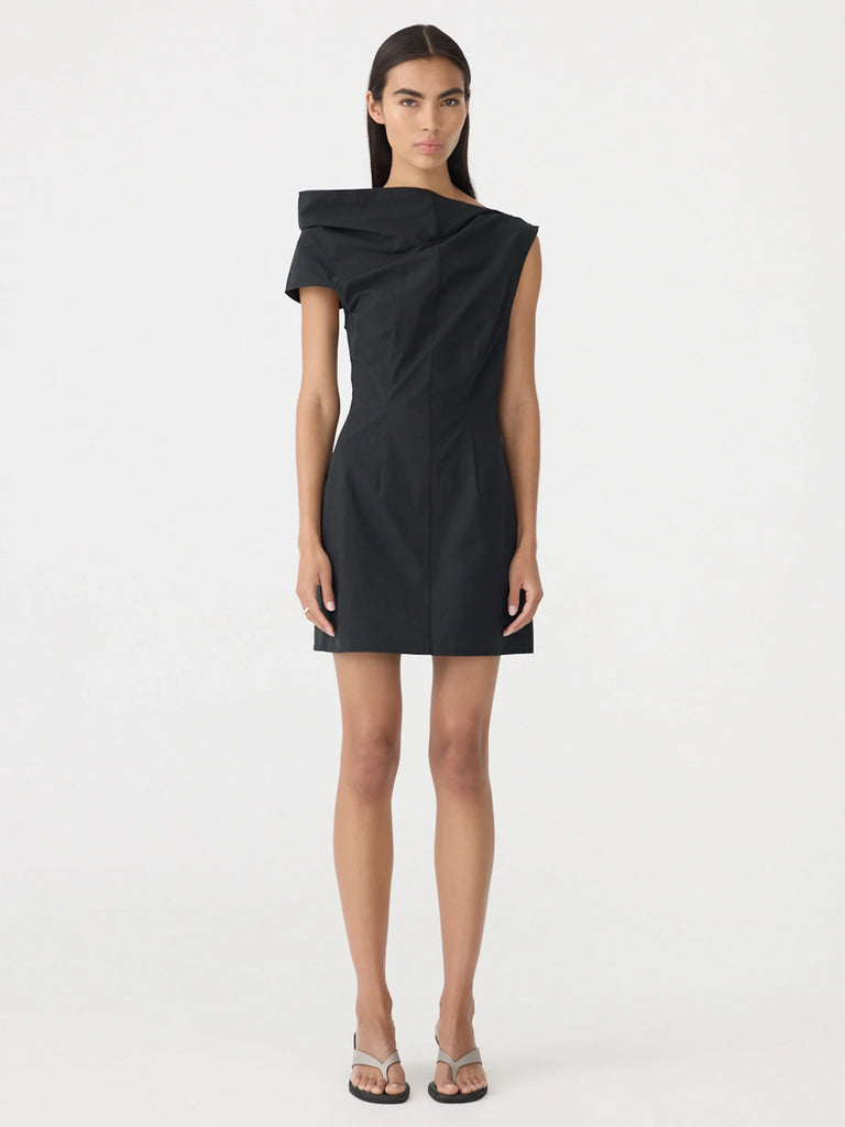 BASSIKE Crushed Cotton Shoulder Dress - Black