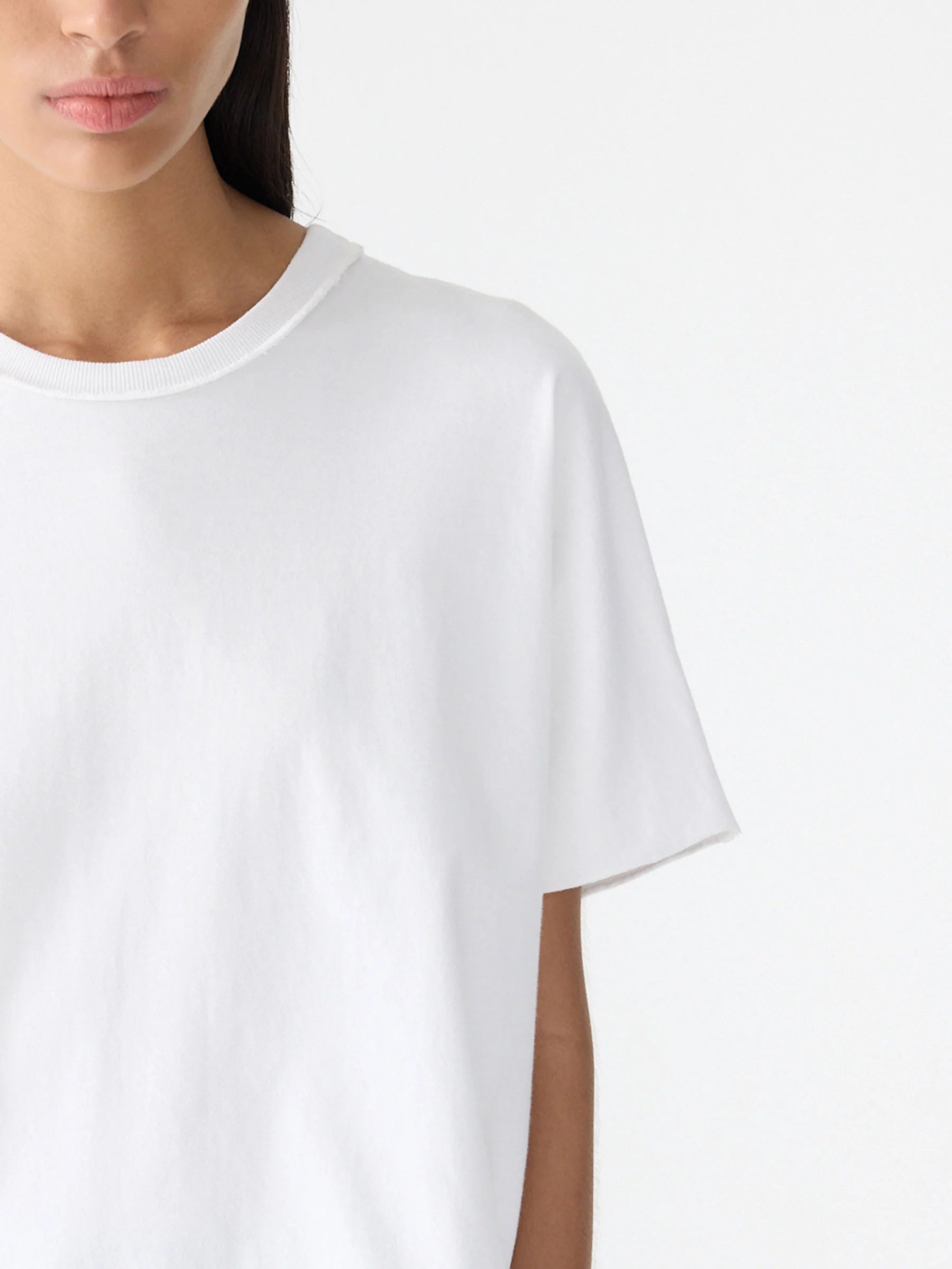 The Mid-weight Raw Slouch Boxy Tank is crafted from organic mid-weight jersey for a soft, structured feel. Designed in a relaxed, boxy silhouette, it features a reversed rib neck with back neck bind and a raw hem for an effortless, tactile finish.