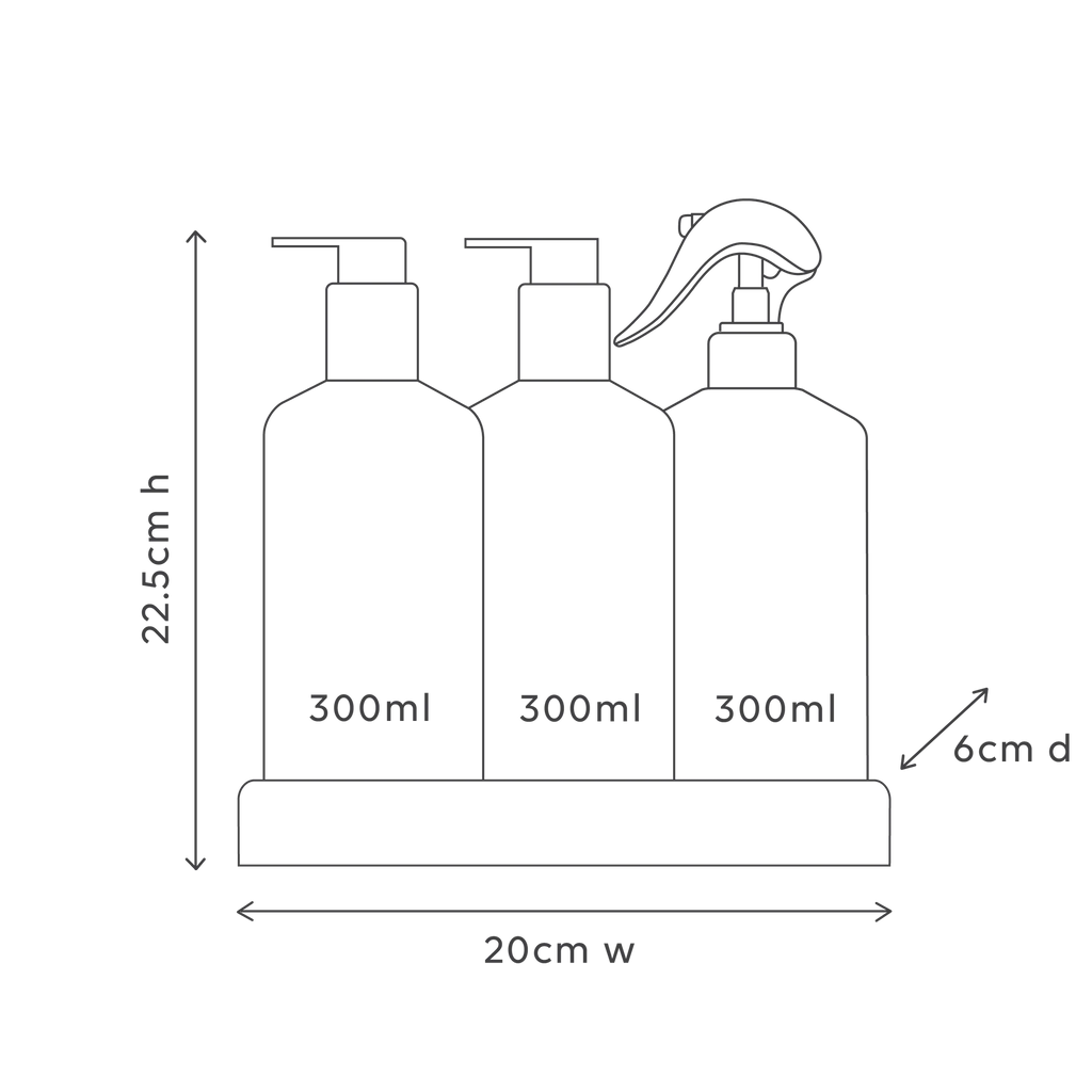 Our 300ml bottles are 100% recyclable and made from HDPE plastic. Our trays, made from ABS plastic, are designed for durability and longevity.