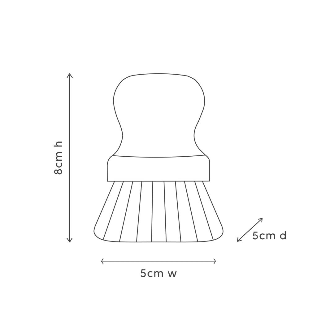 The dish brush handle is made from bamboo, and the bristles are sisal and palm.