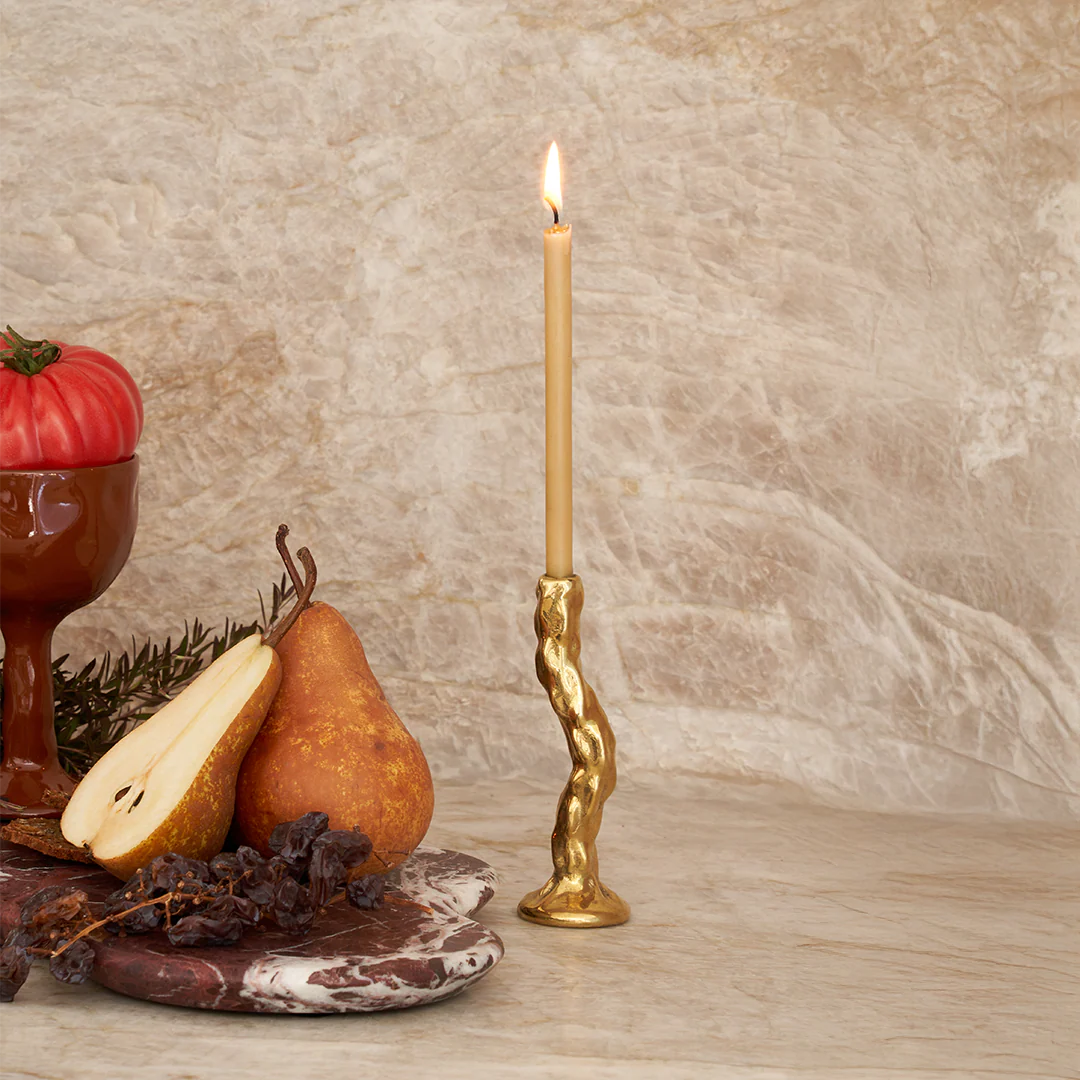 Inspired by branches, the Twig Brass Candle Holder has an organic silhouette and subtle bark-like texture. Pair it with our slender Twig Beeswax Taper to bring a natural touch of luxury to any table setting.