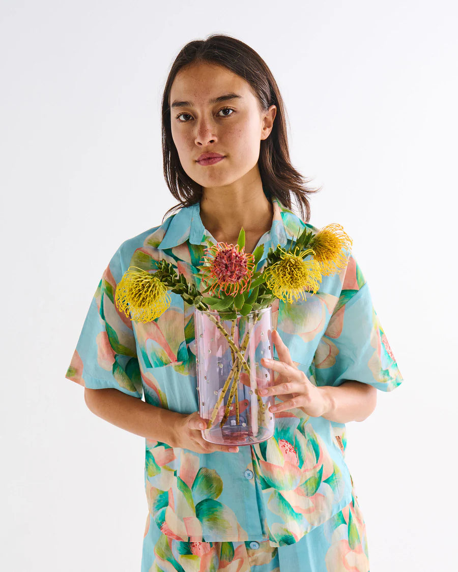 Our Mint Chip Vase is a pastel showstopper, with pale pink glass dotted in raised mint-green spots. Equal parts sweet and striking, it’s the perfect home for fresh flowers, dried blooms, or just as a stand-alone statement piece. A little scoop of style for your shelf, table, or mantel.
