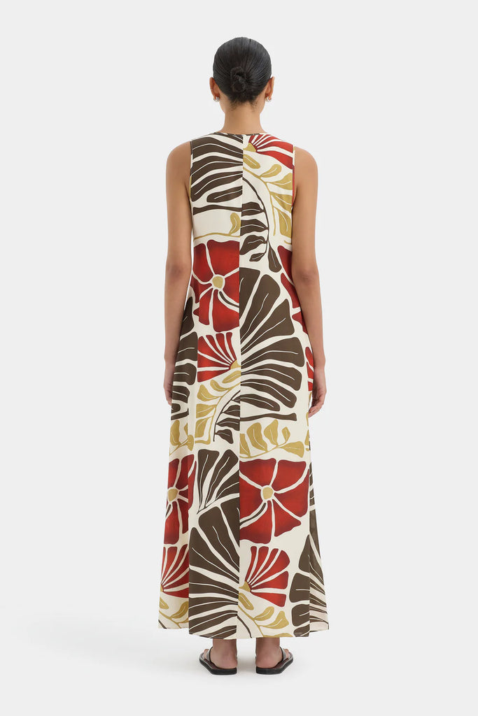 The Julietta Scoop Neck Maxi Dress in Fiorello Rosso is crafted from a fluid sarong fabrication with a hint of silk for an elevated handfeel. Designed for effortless wear, it features a scoop neckline and relaxed shape through the body.