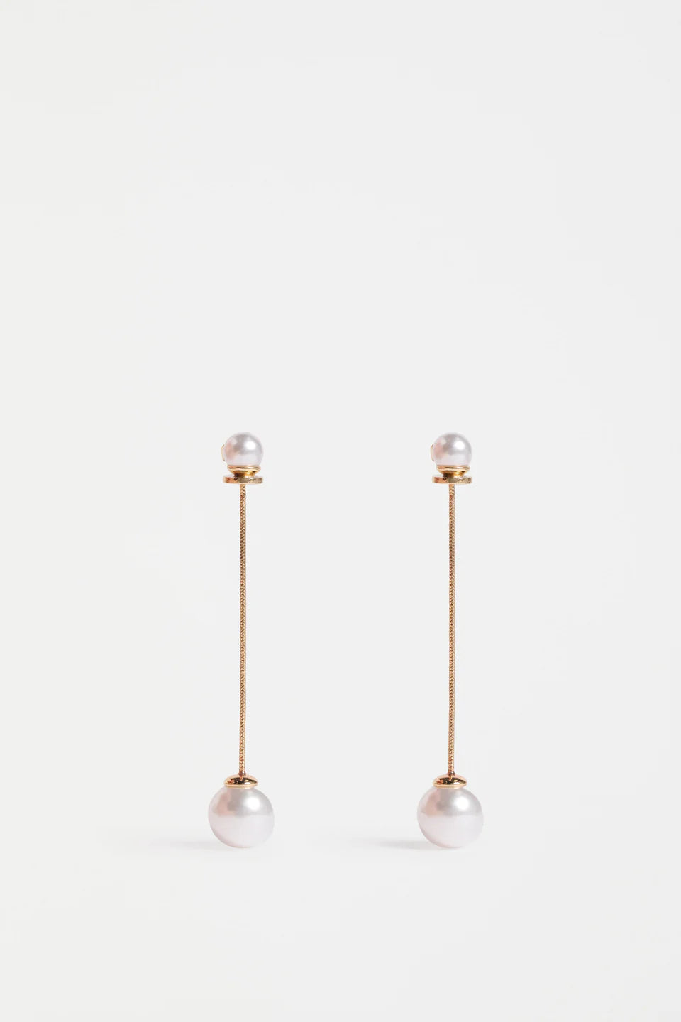 The ELK Sarra Drop Earring are a long drop design with an elegant and sophisticated edge. These lightweight, fine earrings showcase a long chain with a small round bead at the ear, and a larger bead dangles at the other end, creating delicate movement