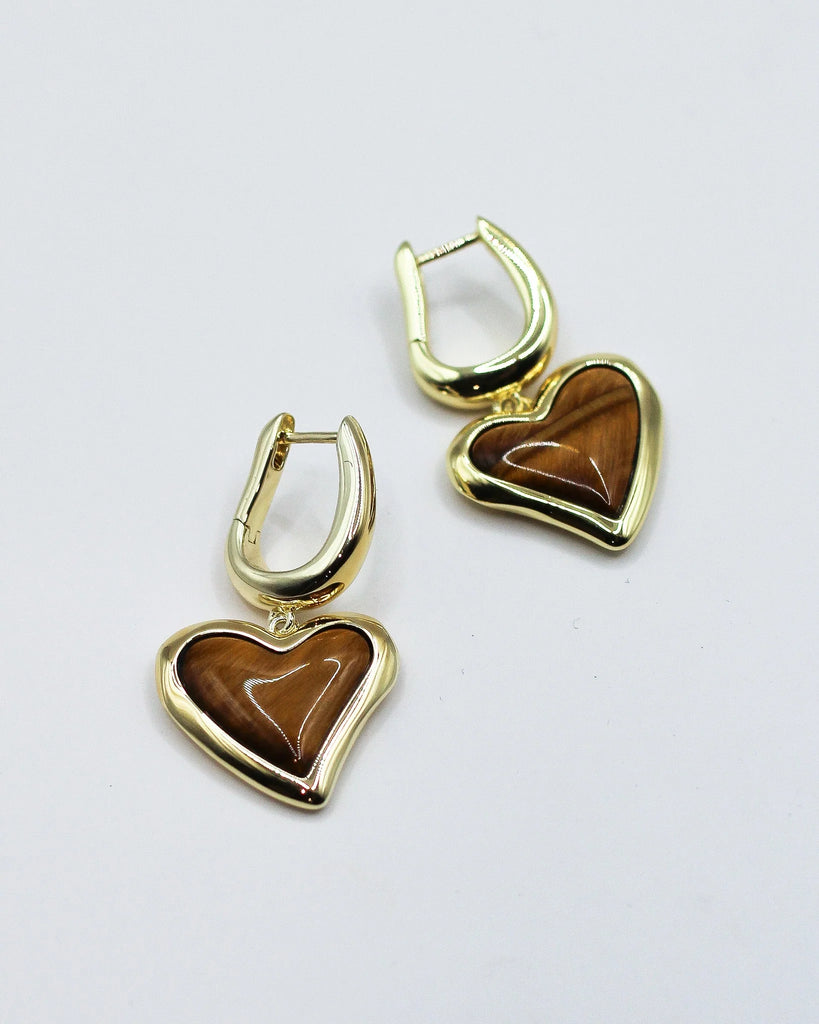 F+H Studios Whitney Heart Charm Earrings - Gold + Tiger's Eye