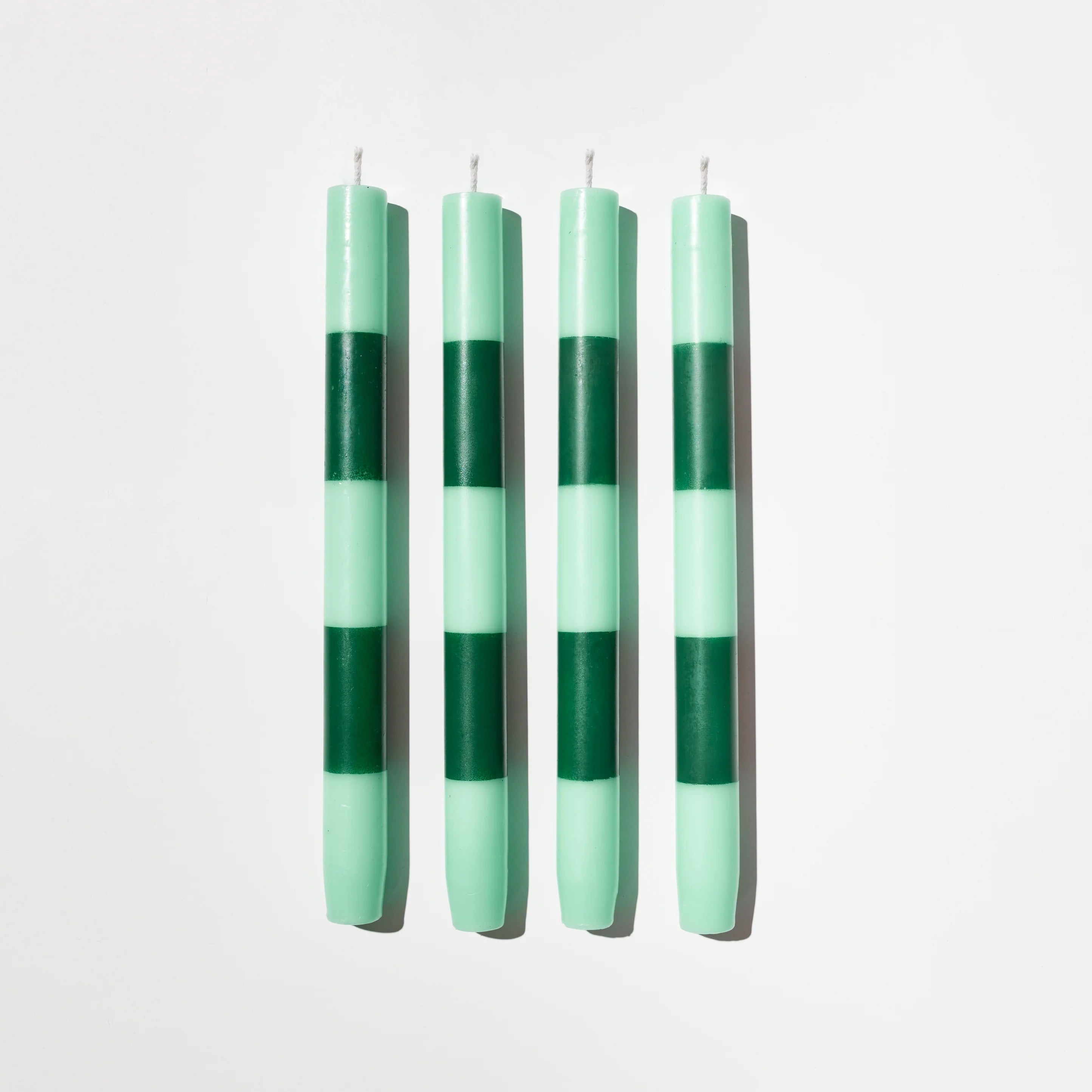 Fazeek Striped Dinner Candles - Jade + Green 4pack
