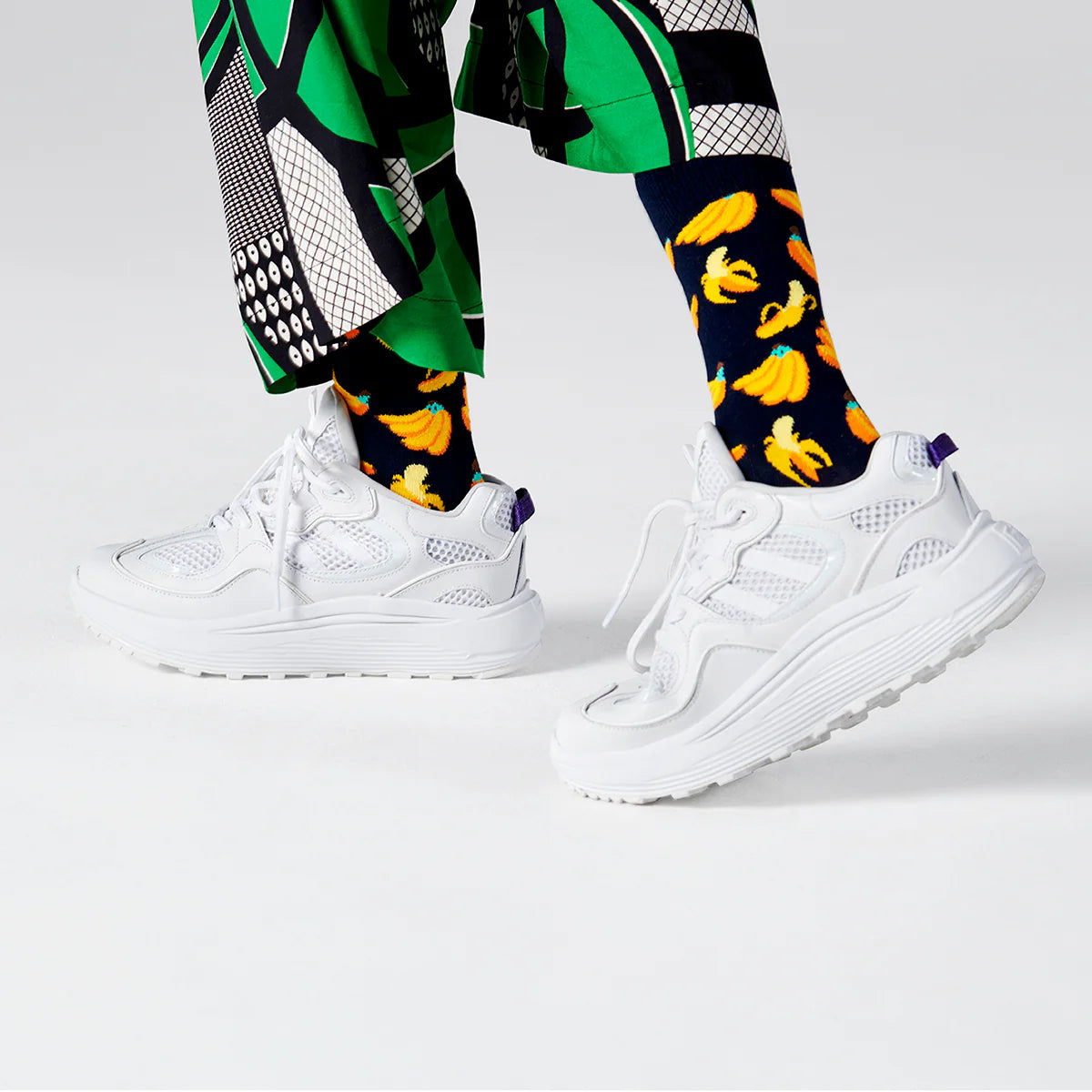 Banana socks make it easier than ever to create a fashion statement that combines high-quality comfort with eye-catching style. With a bold graphic pattern and vibrant colours these socks are sure to leave a lasting impression.Ā