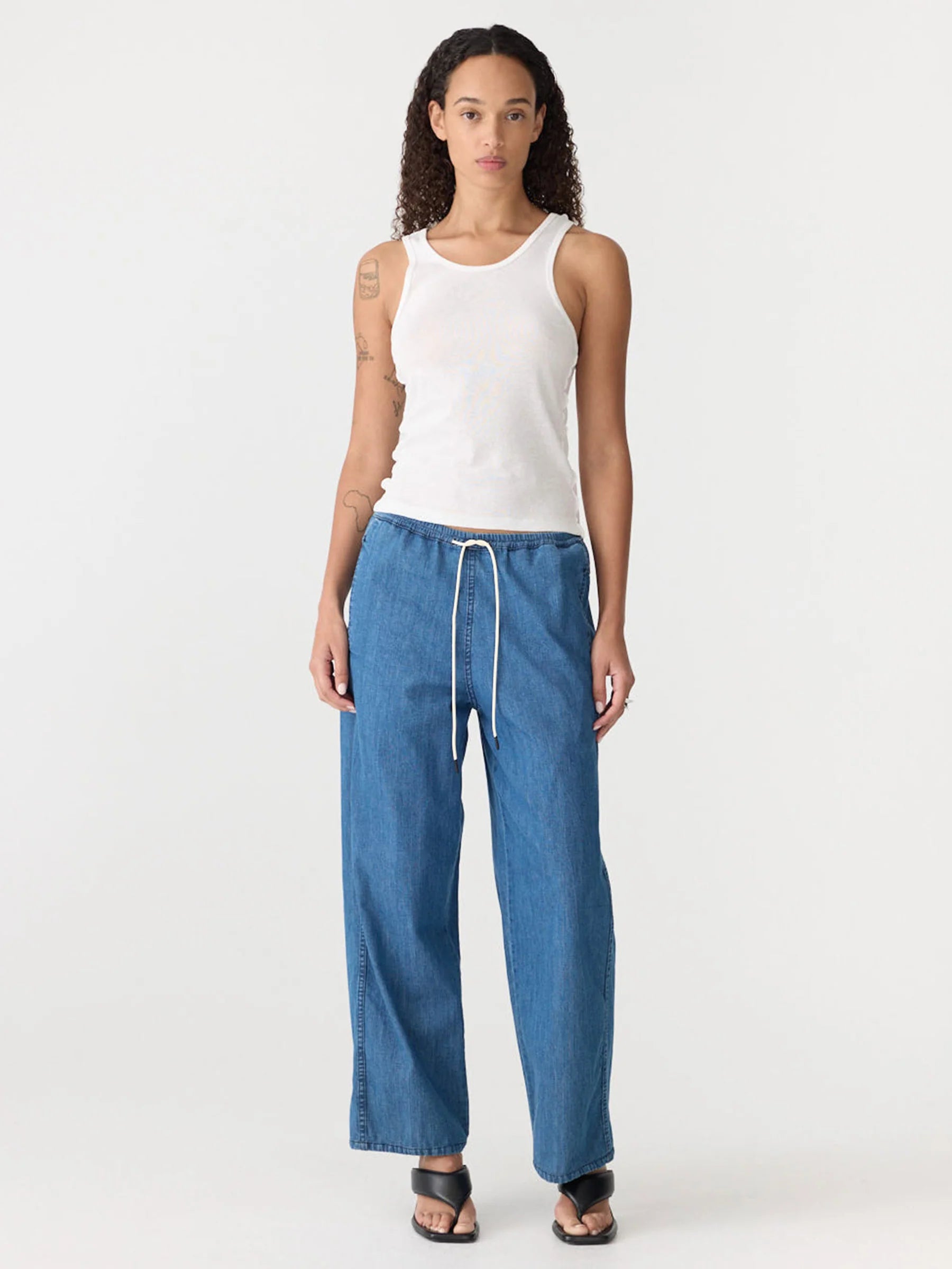 BASSIKE Organic Denim Wide Leg Pant - Washed Indigo