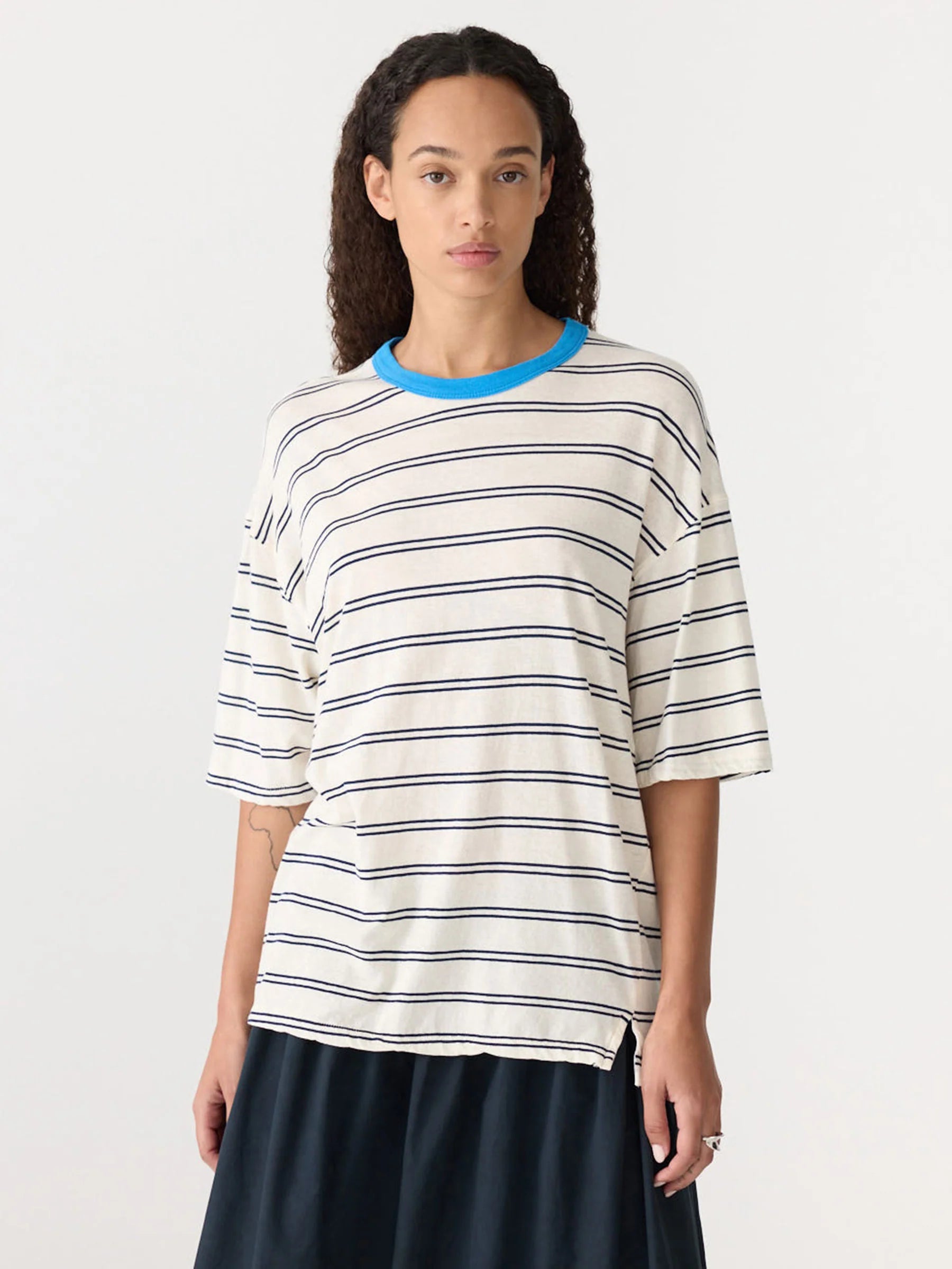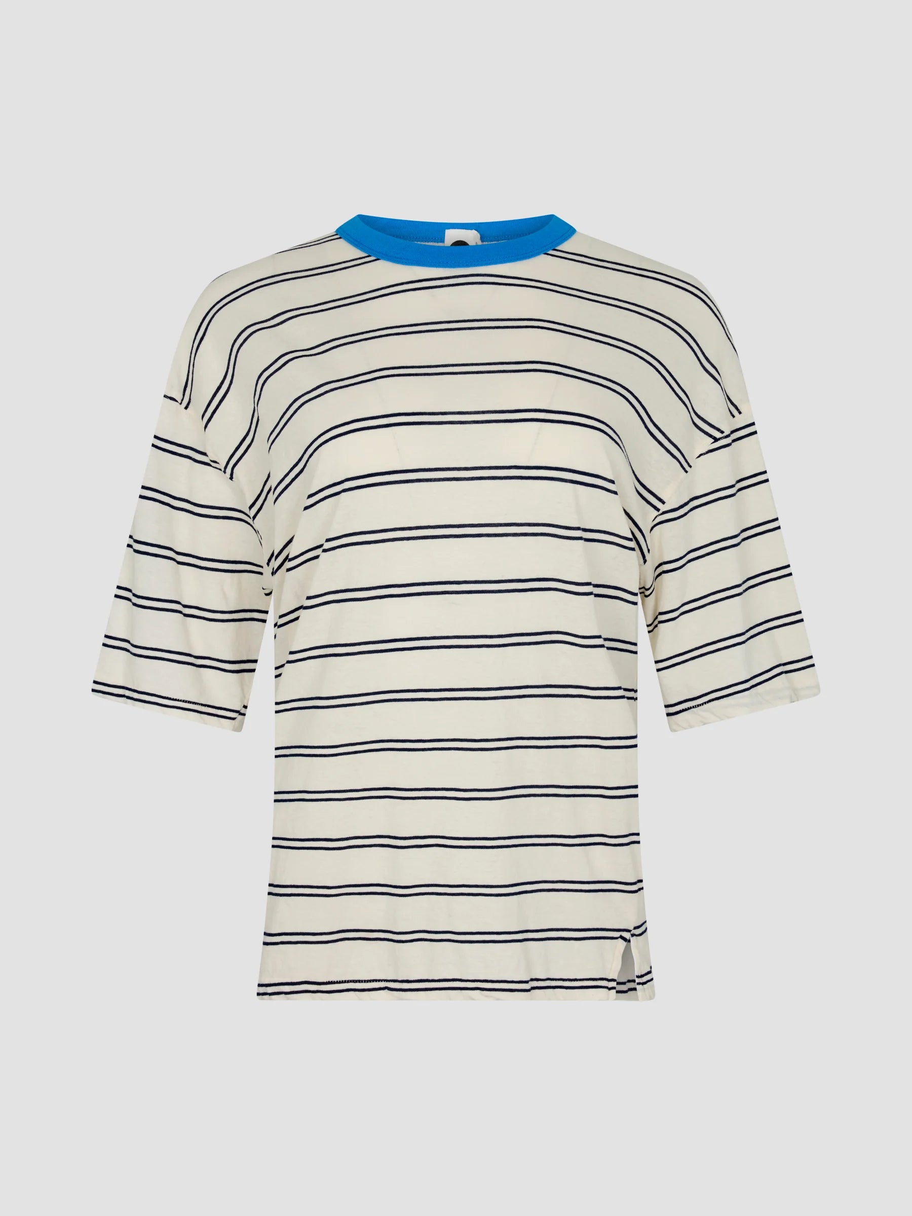 BASSIKE Stripe Boxy T.Shirt - Navy/Undyed/Blue