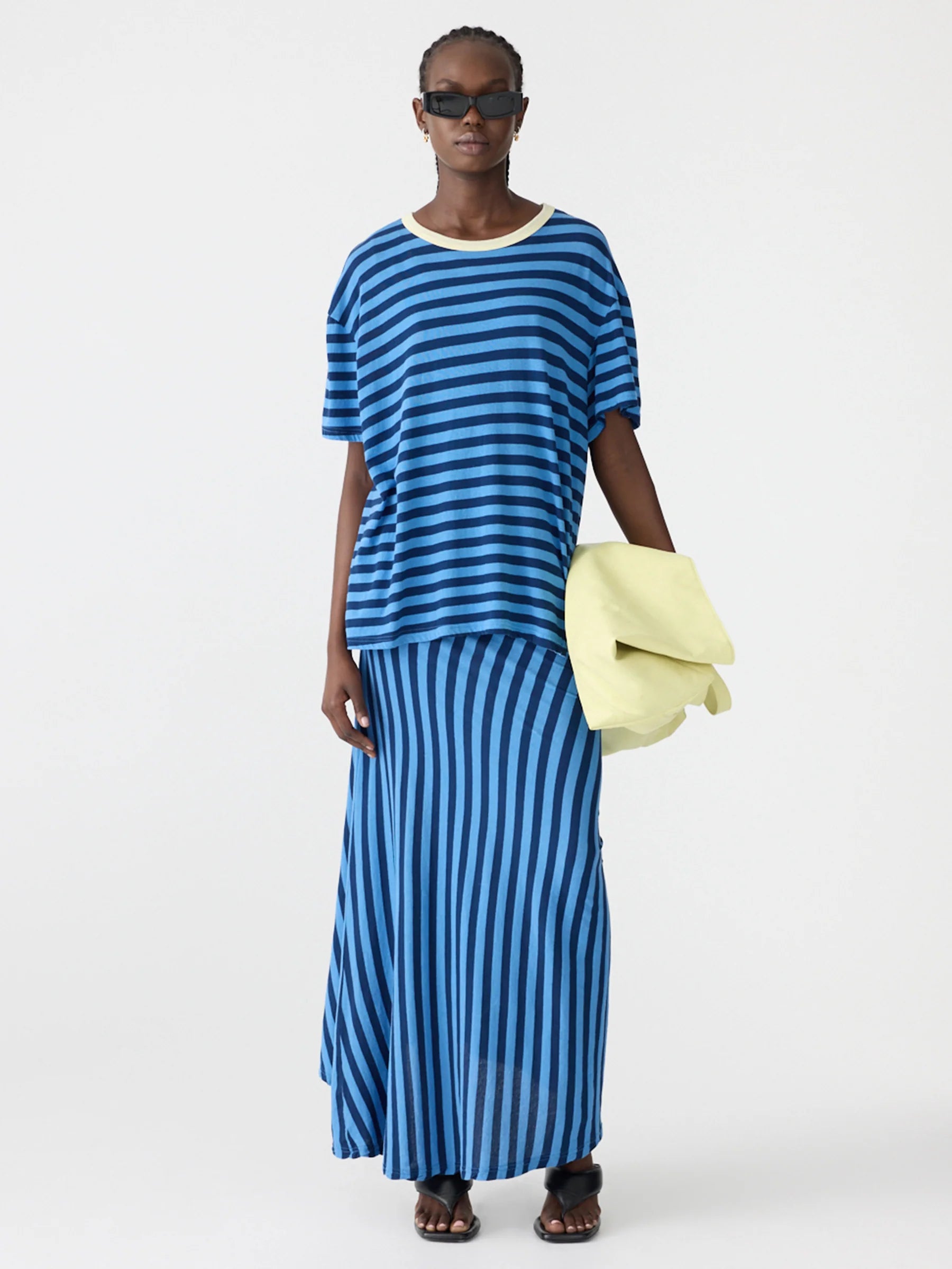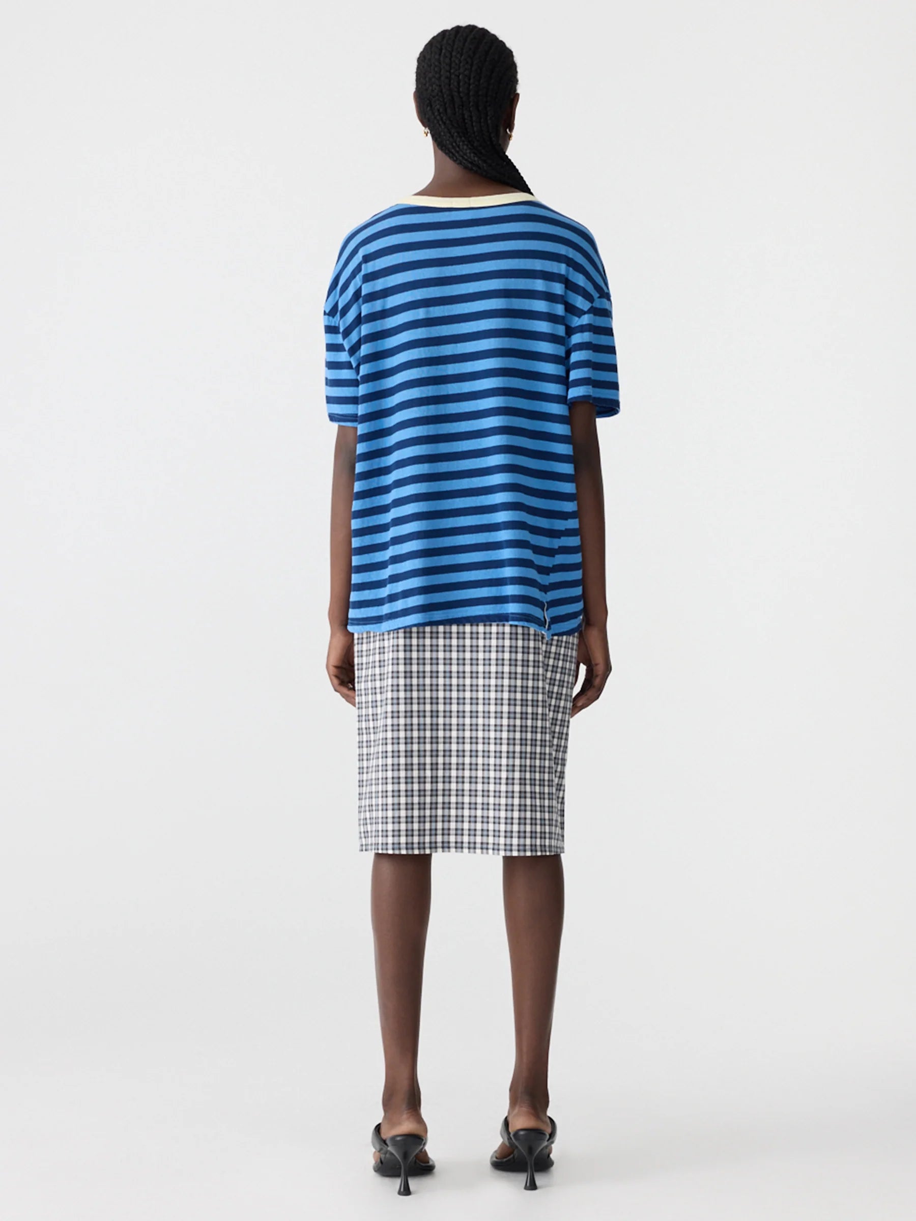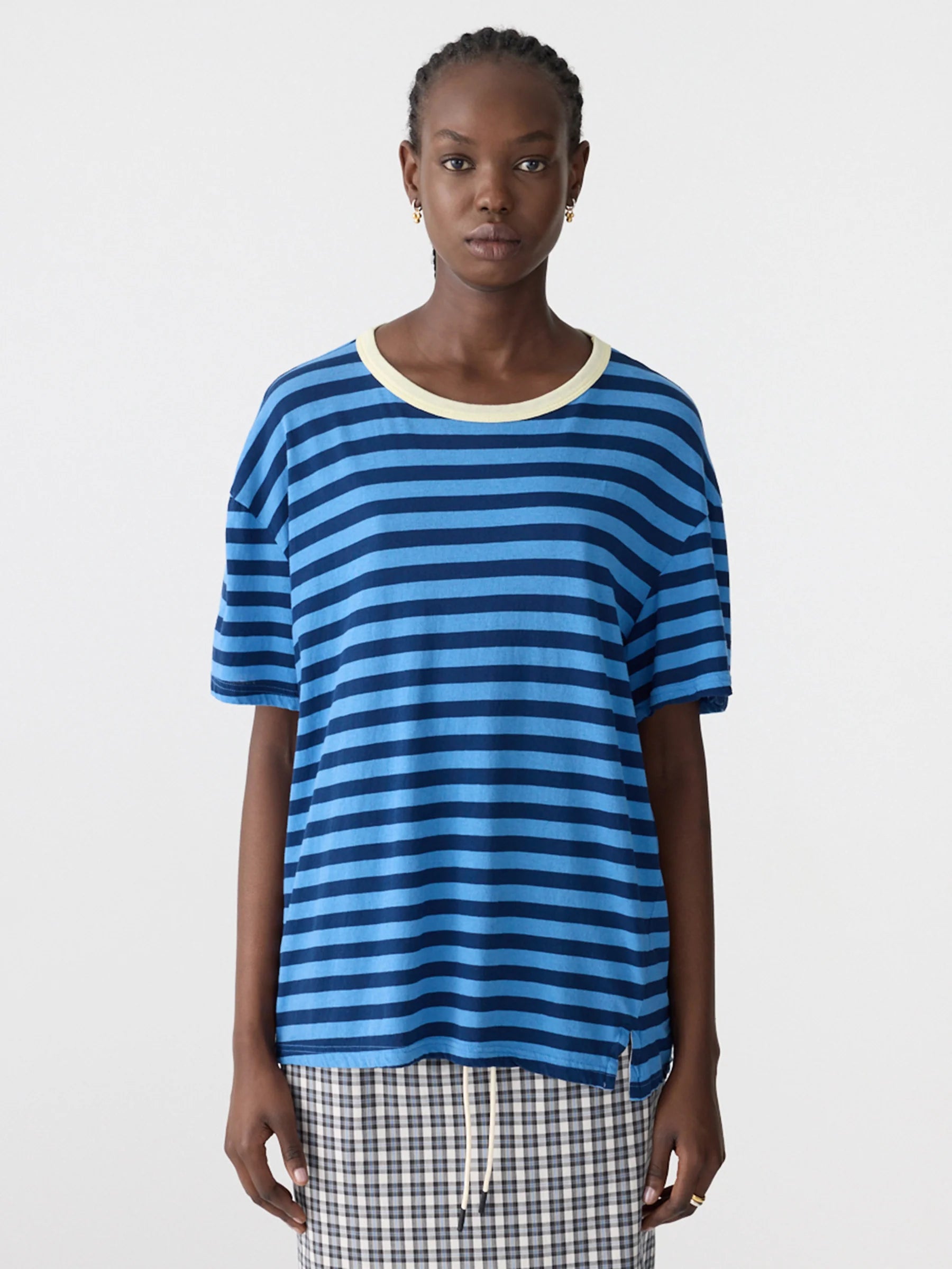 BASSIKE Stripe Boyfriend T.Shirt - Light Blue/Navy