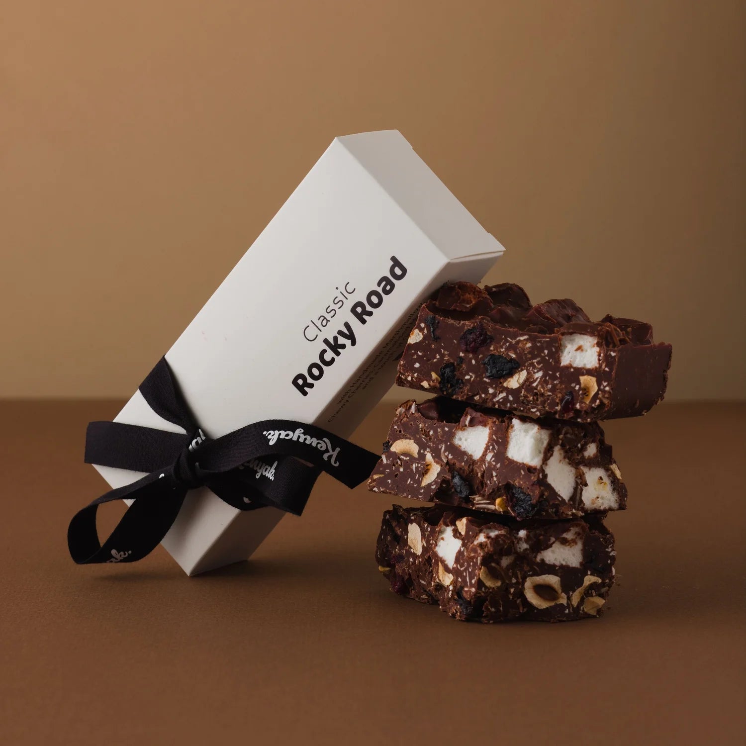 A seriously scrumptious box of handmade Rocky Road. Classic. Nostalgic. Full of all the good stuff. Wrapped up with the cutest ribbon, because you deserve a treat.
