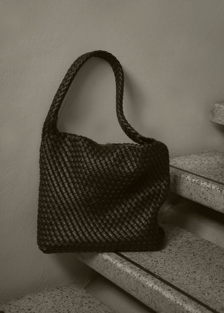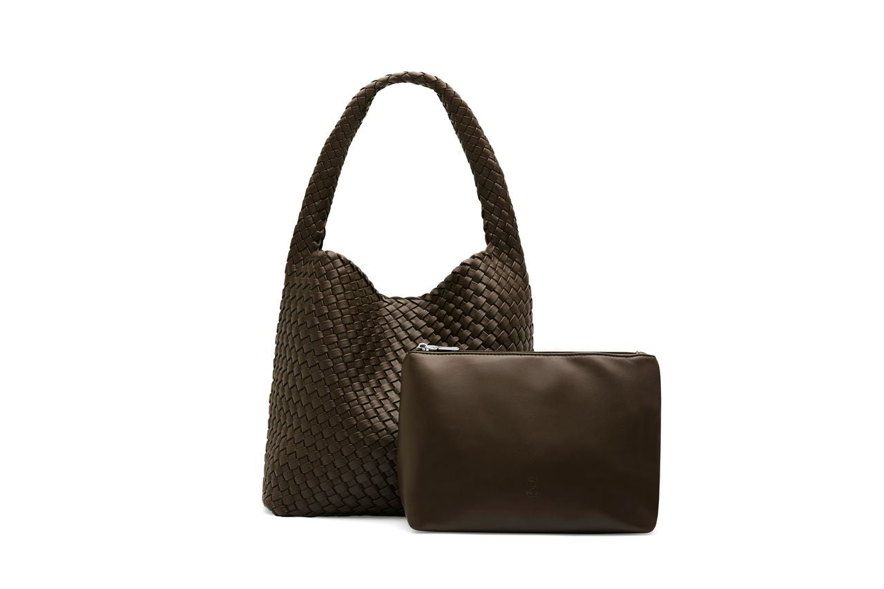 Rylan Recycled Alt-Leather Woven Large Tote - Brown
