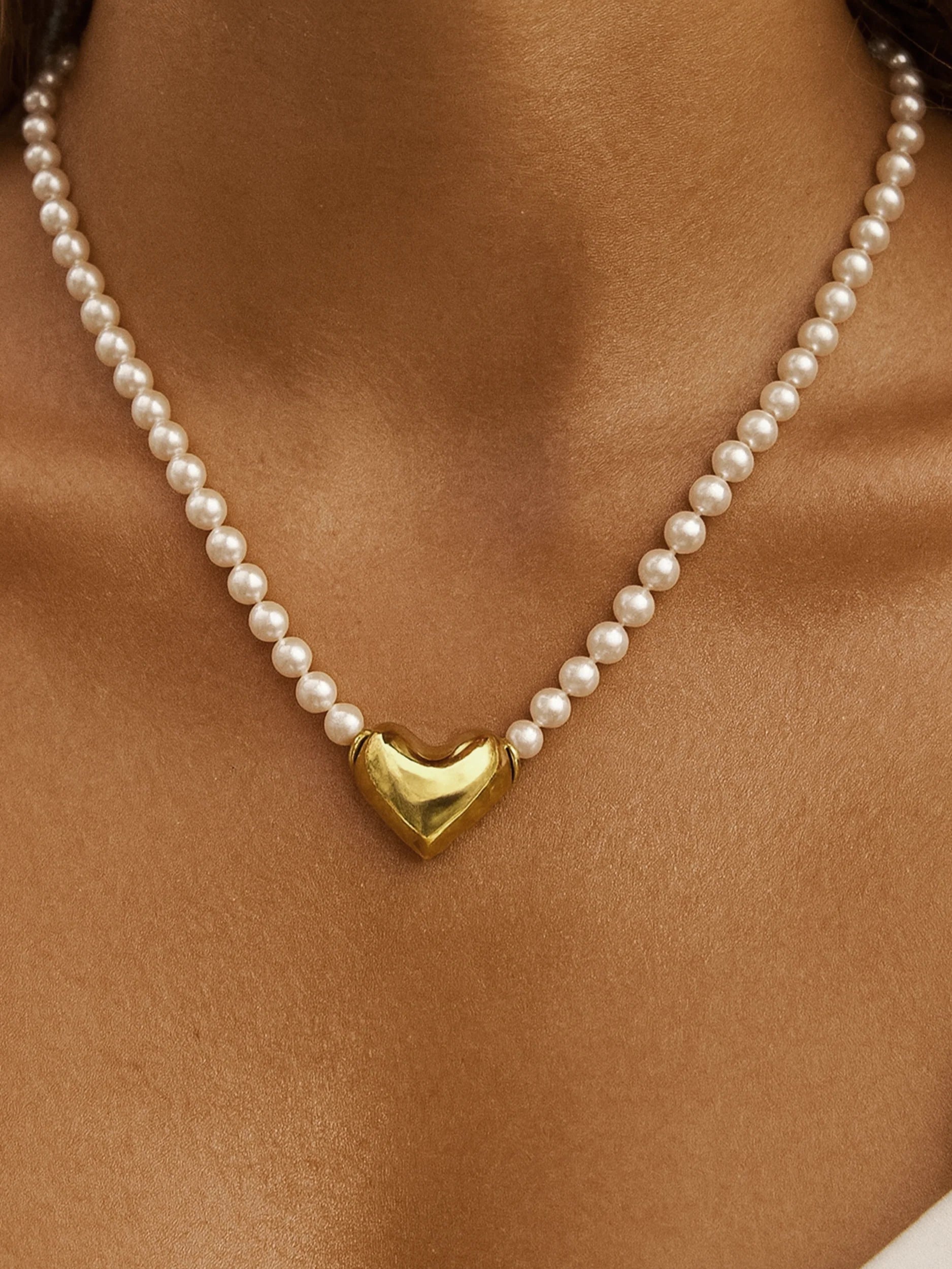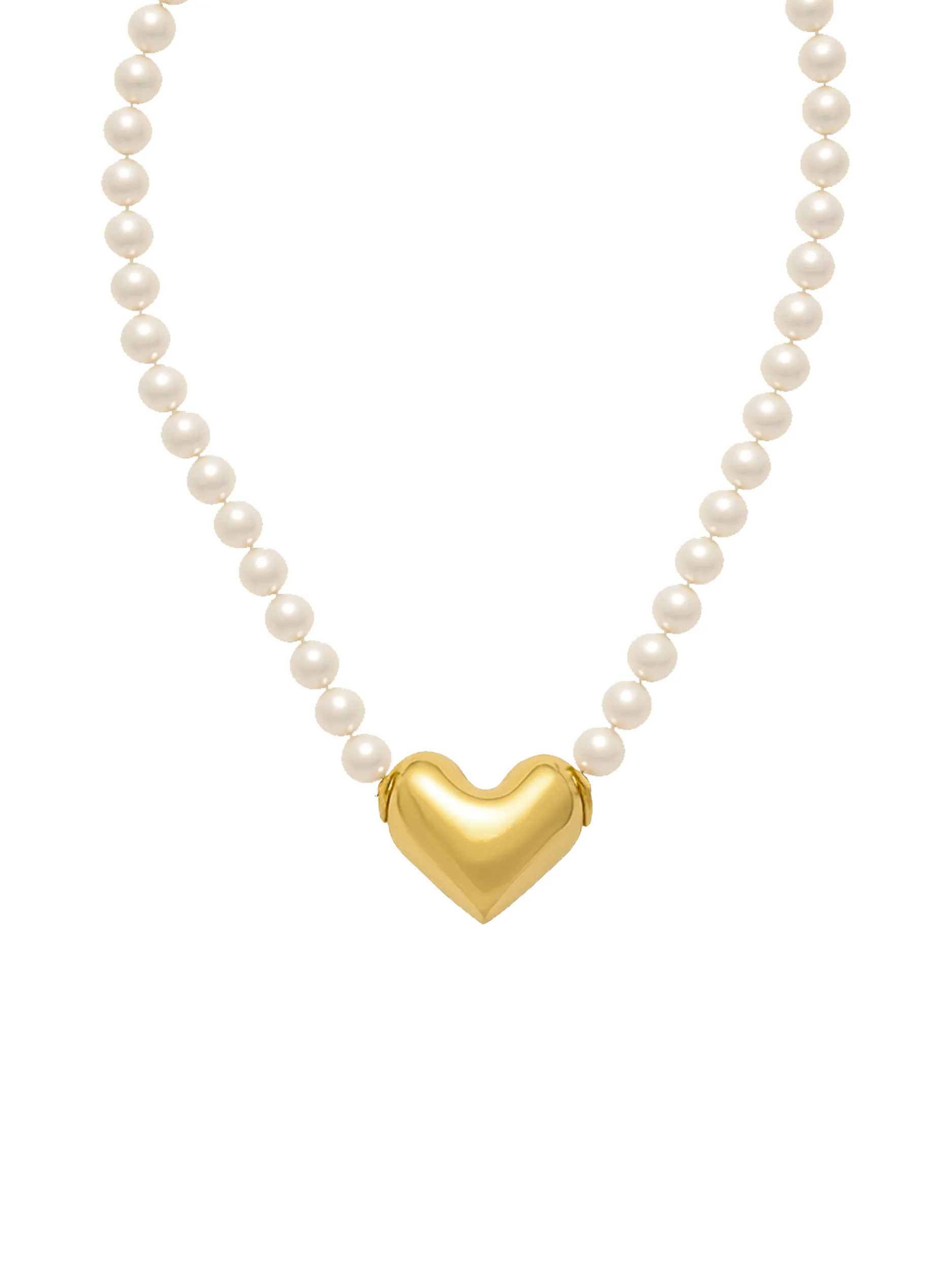 A summer essential, the Anouk Pearl Heart Necklace is an elevated choker that brings together classic romance and contemporary charm. A strand of lustrous freshwater pearls meets a magnetic heart pendant. The smooth, sculptural heart serves as a modern symbol of love, while the pearls add timeless grace and femininity. Whether layered or worn alone, the Anouk is a statement of sentiment and sophistication.