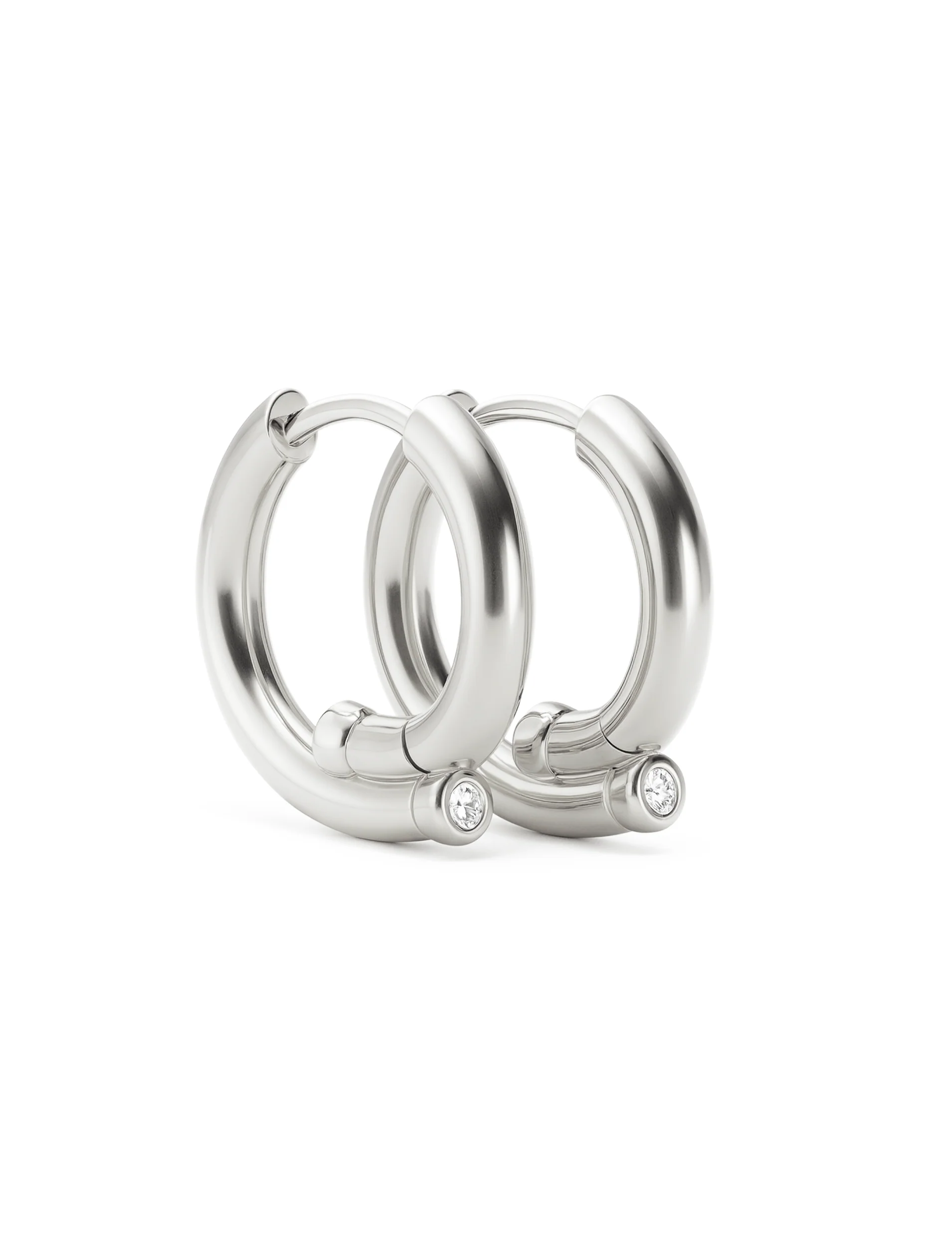 Sleek and refined, the Bruna Hoops bring a modern edge to a timeless silhouette. Crafted in sterling silver these sculptural hoops feature a smooth, rounded profile that catches the light with every movement. Each hoop is accented with a single bezel-set cubic zirconia gem adding a subtle yet sophisticated sparkle. Designed for effortless wear, the Bruna Hoops balance minimalism with luxury — perfect for everyday elegance or layered with other pieces for a bold, contemporary look.