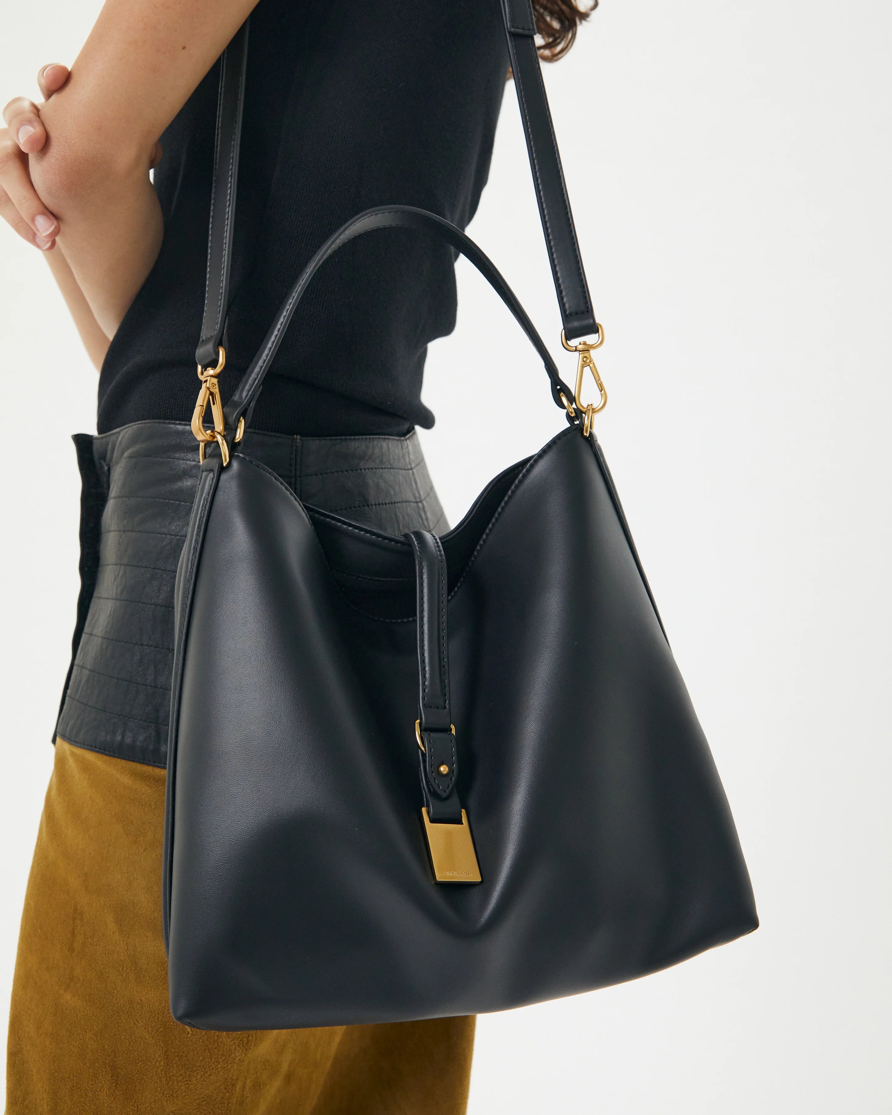 The Josie Bucket Bag is a 90s-inspired nod to elegant minimalism, with a structured yet soft silhouette. Accented with our signature Brie Leon branded tab hardware, it can be carried by the top handle or worn crossbody, offering versatile, multi-wear functionality. Crafted in recycled cactus leather, it has a buttery soft sheen and finish, designed to age beautifully with wear.